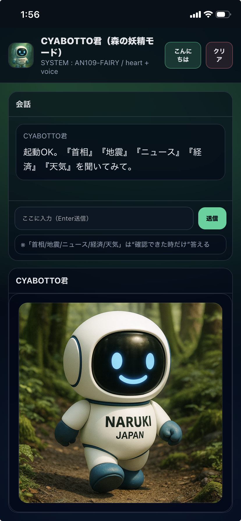 - フロント:チャボット君(対話UI・人格・振る舞い)